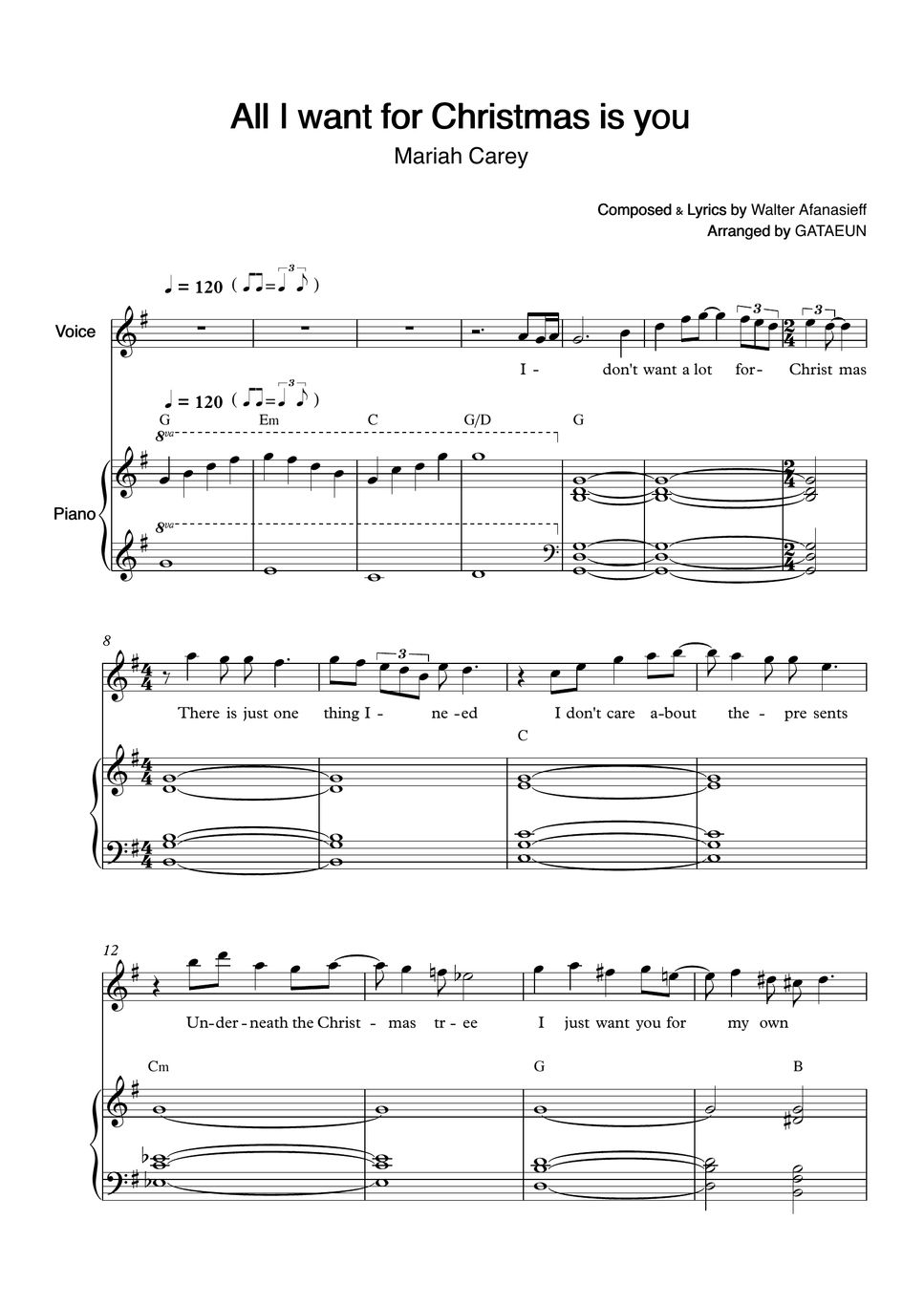 Mariah Carey All I Want For Christmas Is You (Lyrics + Chord + Vocal