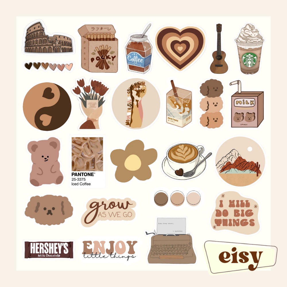 EISY 25 pcs. Aesthetic Brown Sticker Pack Shopee Philippines