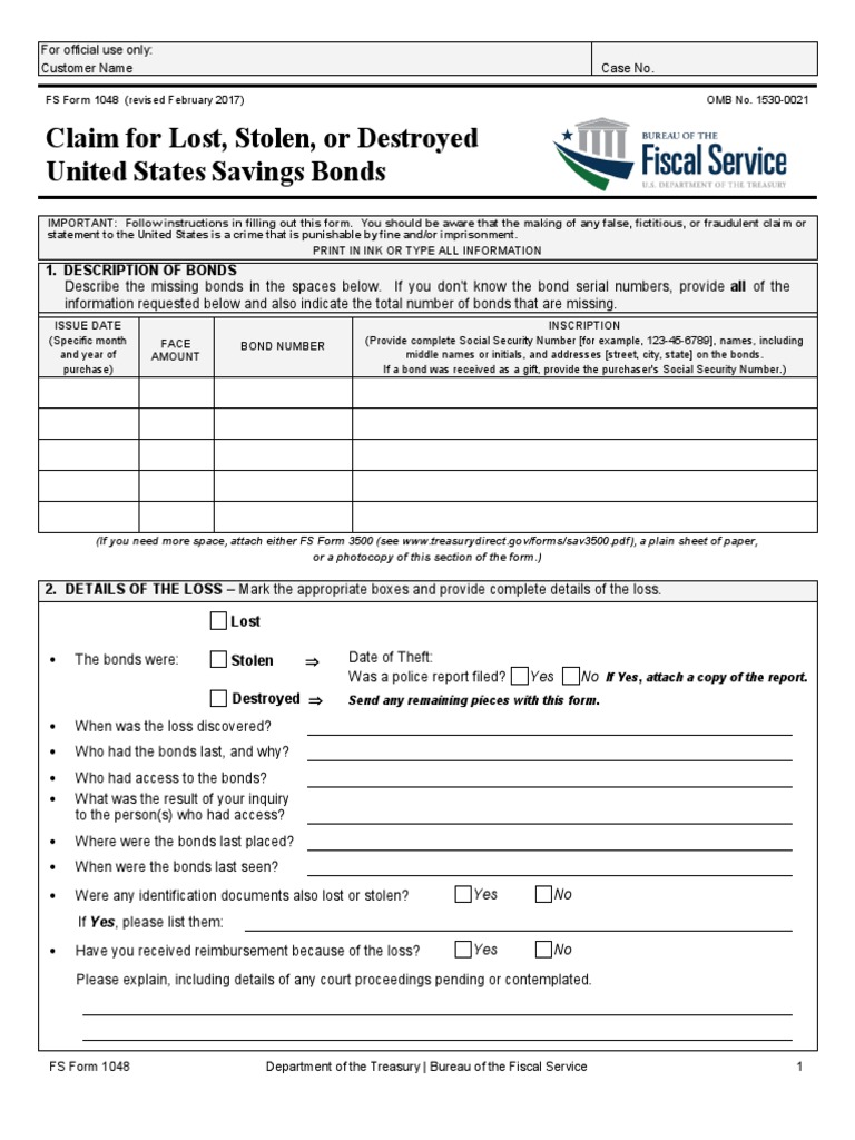 Treasury Bond Claim Form Sav1048 Bonds (Finance) Government