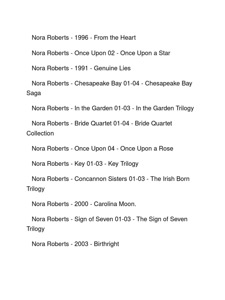 Printable Nora Roberts Book List - Deals of the dayfast shippingshop best sellersshop our huge selection Deals of the dayfast shippingshop best sellersshop our huge selection Deals of the dayfast shippingshop best sellersshop our huge selection Deals of the dayfast shippingshop best sellersshop our huge selection Deals of the dayfast shippingshop best sellersshop our huge selection Deals of the dayfast shippingshop best sellersshop our huge selection Deals of the dayfast shippingshop best sellersshop our huge selection Deals of the dayfast shippingshop best sellersshop our huge selection Deals of the dayfast shippingshop best sellersshop our huge selectionA Complete List of Nora Roberts' Books Nora roberts books, Nora