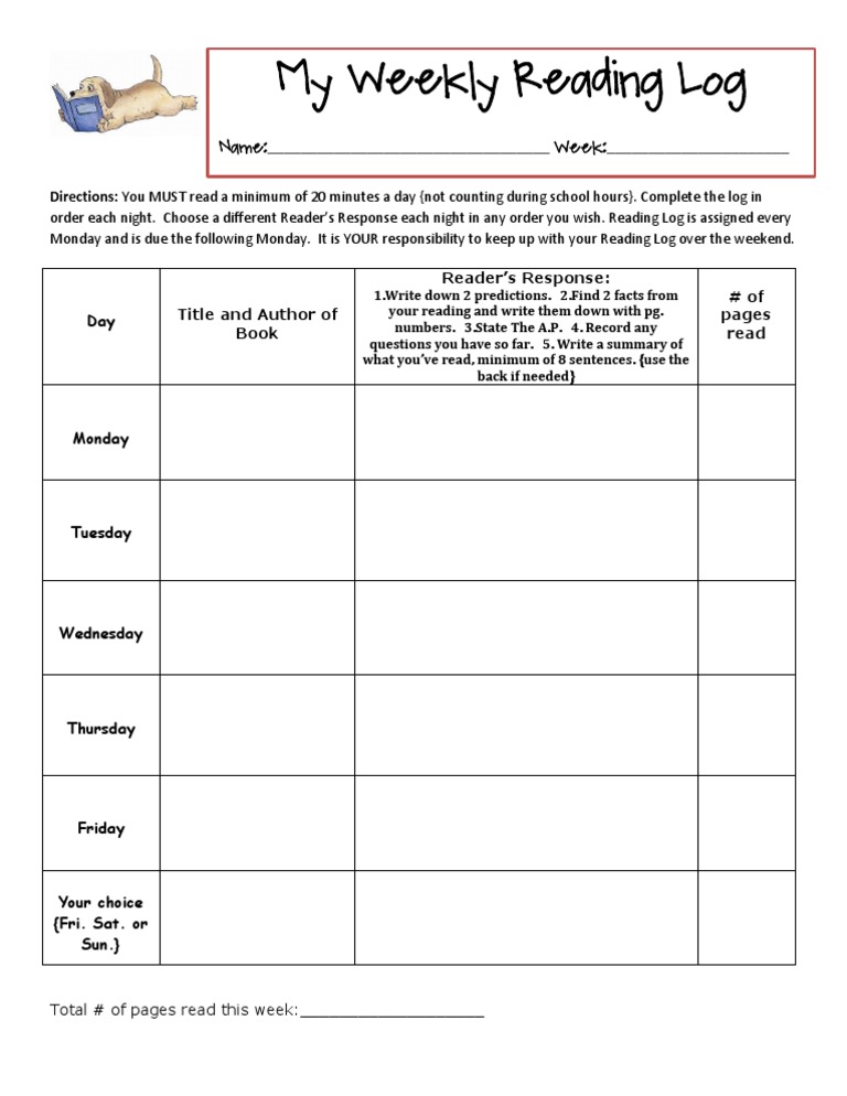 Free Weekly Reading Log Printable FREE PRINTABLE TEMPLATES